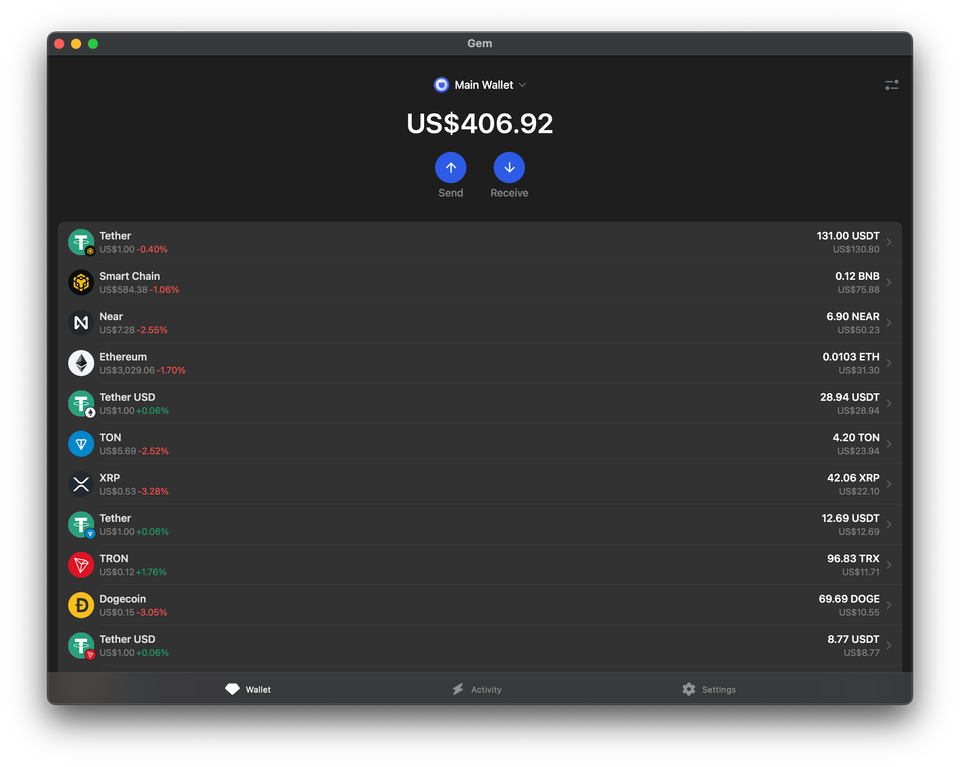 Gem Wallet can be installed on Mac computers with Apple silicon running macOS version 14.0 or later.